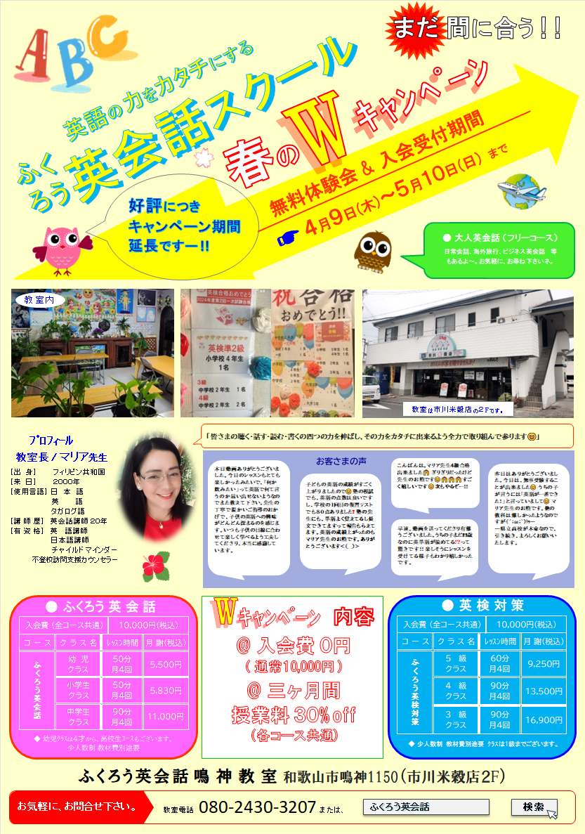 | まだ間に合う! 春のWキャンペーン (鳴神・治郎丸教室 共通) 5月10日まで |